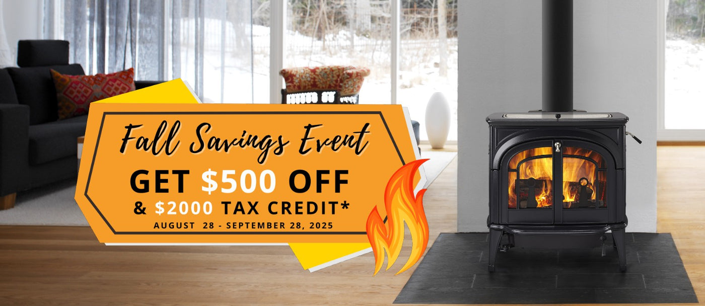 *Fall Savings Event Sale Details: Sale runs August 28 β September 28, 2025. Savings up to $500 off is valid during sales dates only. Offer has no cash value. Cannot be combined with other in-store sale offers. Federal Tax Credit Details: Up to 30% of purchase price ($2000 limit) is subject to purchasing a qualifying biomass product and IRS rules. This tax credit expires December 31, 2025 and a qualified product must be purchased and installed prior to that date to qualify. Credit applied when filing 2025 income taxes in 2026. Ask store sales associate to ensure youβre purchasing a qualifying product and visit IRS.gov for more details or visit our web page. Restrictions apply, see store for details.