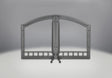 Arched double door; wrought iron