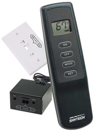 All battery powered control for latching solenoid gas valves. Four-button handheld transmitter with LCD screen. Includes receiver & receiver shield.